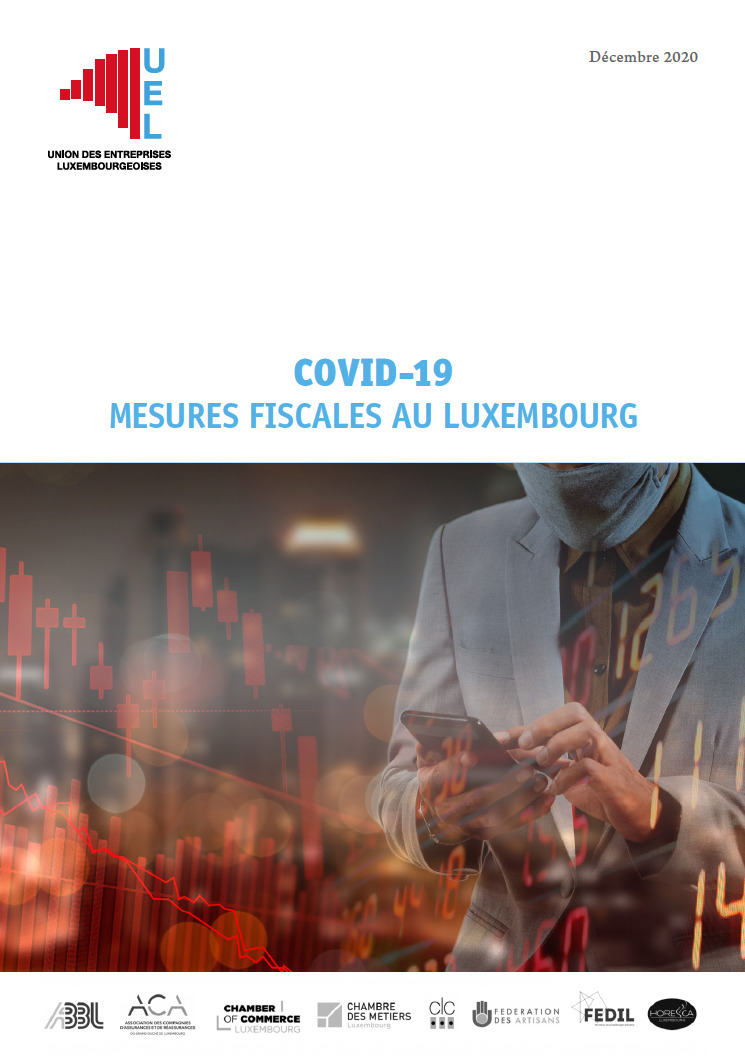 Ein Dokument, das von der UEL in Zusammenarbeit mit der ABBL, der ACA, der Handelskammer, der Handwerkskammer, der clc, der Fédération des Artisans, der FEDIL und der Horesca erstellt wurde und die verschiedenen steuerlichen Maßnahmen auflistet, die von der luxemburgischen Regierung im Zusammenhang mit der Covid-19-Gesundheitskrise angekündigt oder eingeführt wurden.