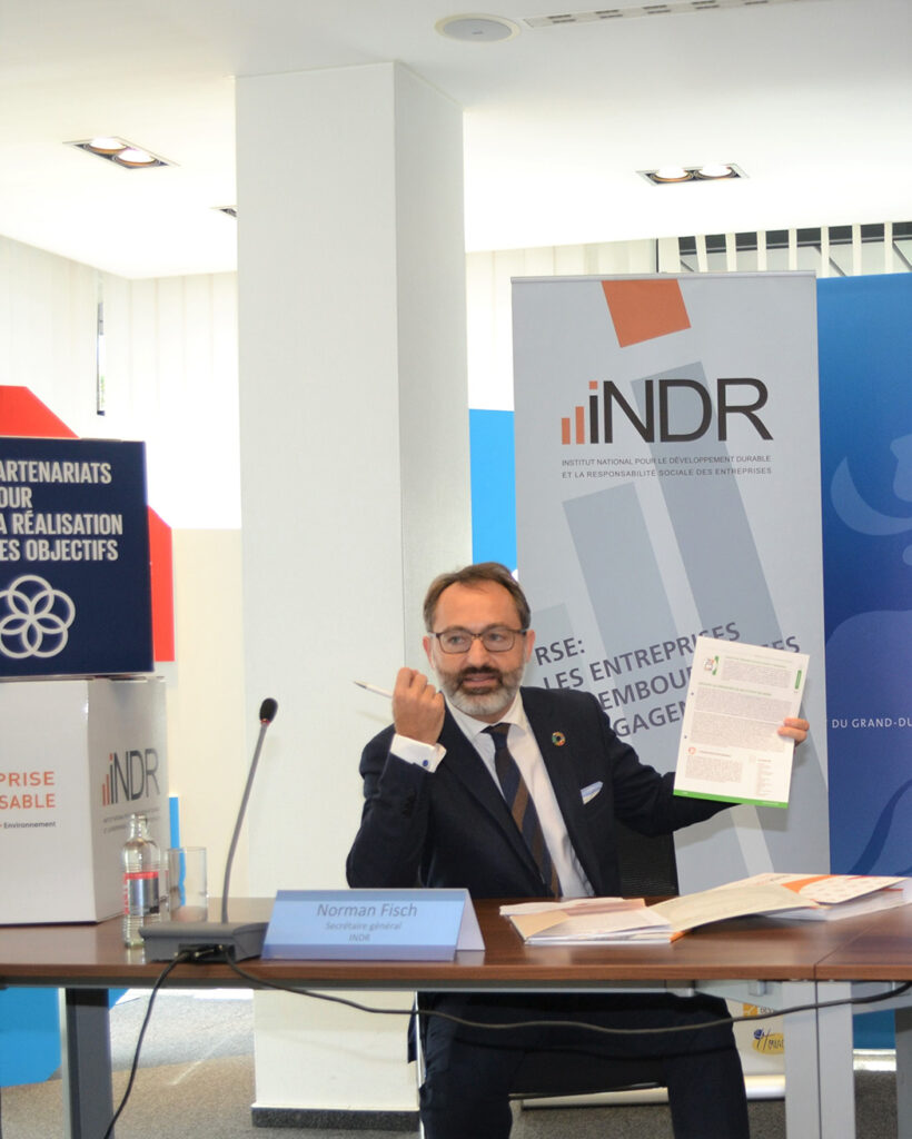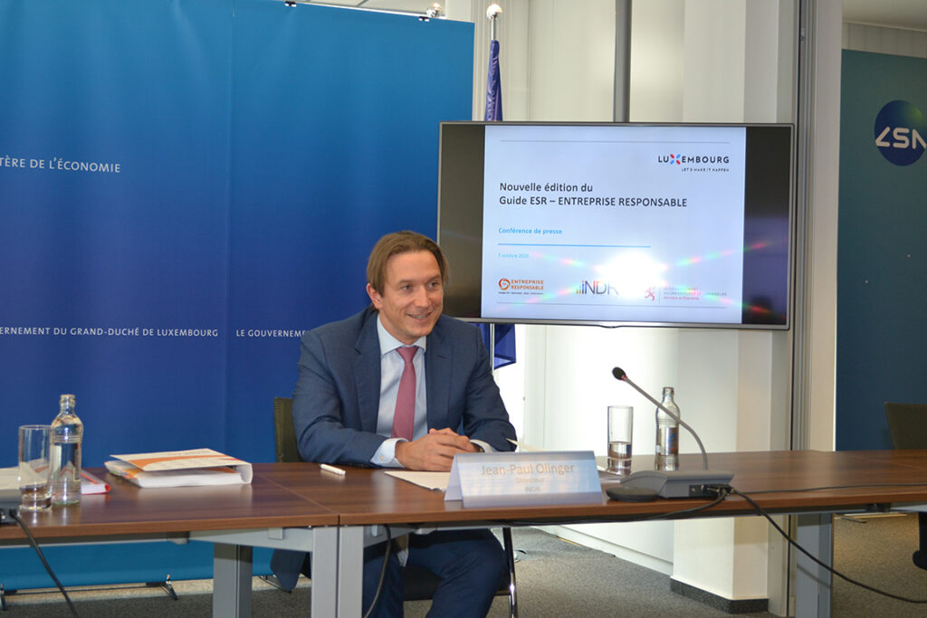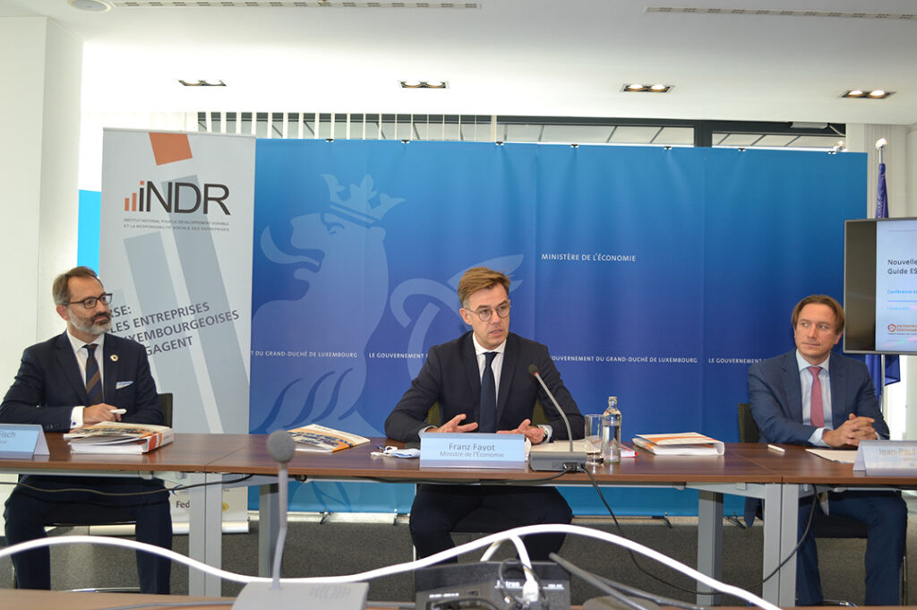 Bei einer Pressekonferenz am 7. Oktober 2020 stellten Wirtschaftsminister Franz Fayot, der Direktor der UEL und des INDR, Jean-Paul Olinger, und der Generalsekretär des INDR, Norman Fisch, die überarbeitete und erweiterte Ausgabe des Leitfadens ESR – ENTREPRISE RESPONSABLE des INDR vor. Dieser Leitfaden wurde in Zusammenarbeit mit den wichtigsten nationalen Akteuren im Bereich der sozialen Verantwortung der Unternehmen entwickelt und soll Unternehmen auf eine bessere Resilienz und den Umgang mit gesellschaftlichen und ökologischen Erwartungen vorbereiten.