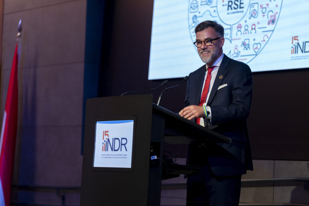 In the presence of Franz Fayot, Minister of the Economy, nearly 200 Luxembourg CSR professionals attended the 15-year anniversary party for CSR and the INDR on September 21, 2023 at the Chamber of Commerce. Marc Lauer, President of the INDR, officially opened the evening by praising the ongoing commitment of Luxembourg companies to CSR and the quality of the services offered by the INDR team since its creation by the UEL and its members. “With the subject of CSR gaining momentum, the INDR (partner of the House of Sustainability) is expanding and will be stepping up its support in the coming months, to meet the growing needs of companies,” declared Marc Lauer.