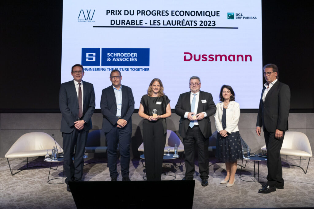 During the evening, the Alphonse Weicker Foundation Prize, endowed with 10,000 euros, was awarded by Yves Nosbusch, Head of Communications, Sustainability & Strategy and Chief Economist at BGL BNP Paribas Luxembourg, to Schroeder & Associés, rewarded for its very comprehensive and ambitious CSR strategy, involving all its stakeholders. The BGL BNP Paribas prize of 2,500 euros was awarded by Béatrice Belorgey, CEO of BGL BNP Paribas Luxembourg, to Dussmann for its project to transform food waste into resources. This is the third year that the Alphonse Weicker Foundation and BGL BNP Paribas, in collaboration with INDR and UEL (Union des Entreprises Luxembourgeoises), have presented the Sustainable Economic Progress Awards, which recognize companies that have developed exemplary and innovative CSR initiatives and/or strategies.