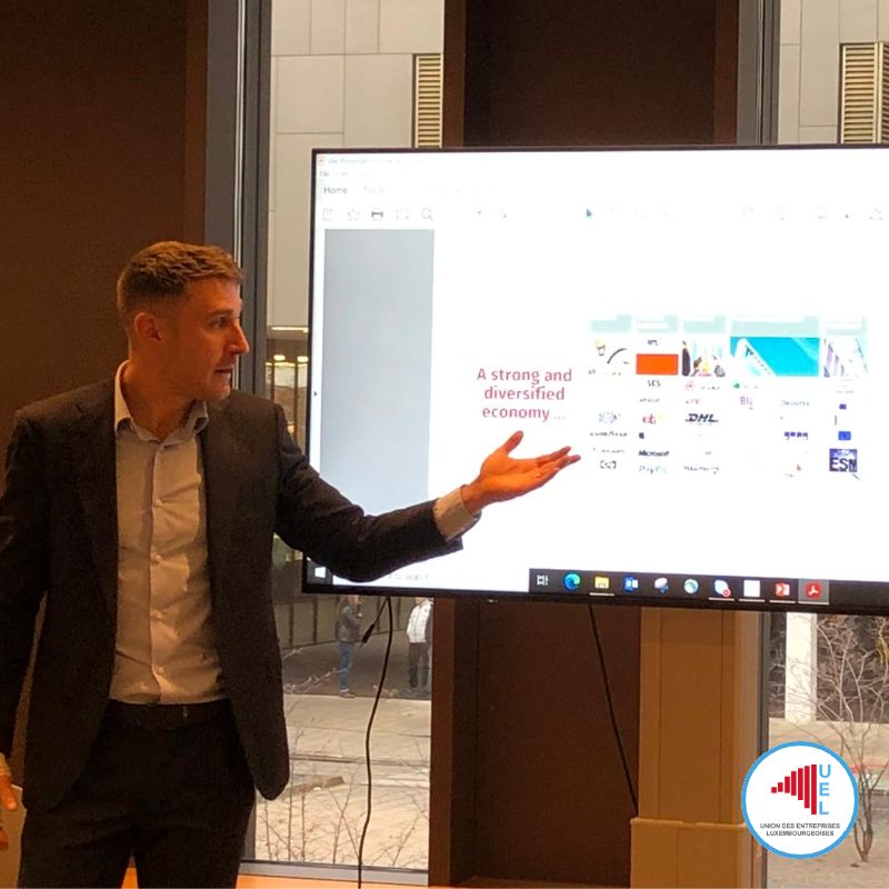 In parallel to their direct exchanges with the business world, Nicolas Simons, responsible for economic affairs at UEL, gave them an overview of the economic landscape of Luxembourg and the advantages of developing a professional career there. His speech was followed by a presentation of the Luxembourg job market and the sectors in shortage, led by ADEM.